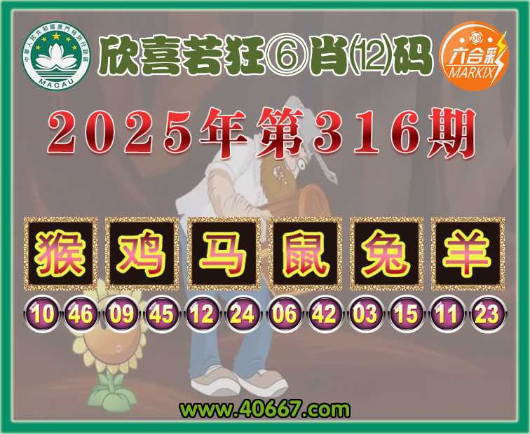 316期:欣喜若狂【⑥肖⑿码】〓 天天中奖