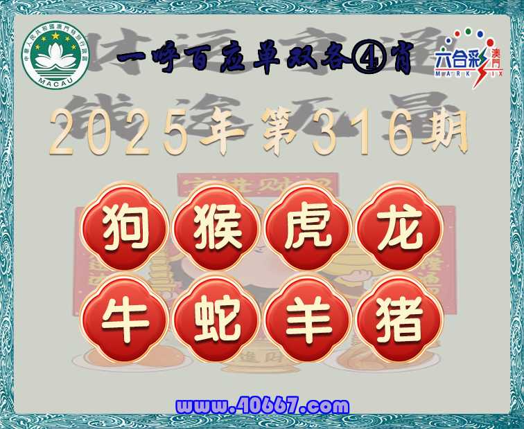 316期:【一呼百应】 💄单双各④肖💄开:00准